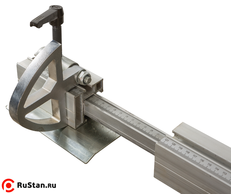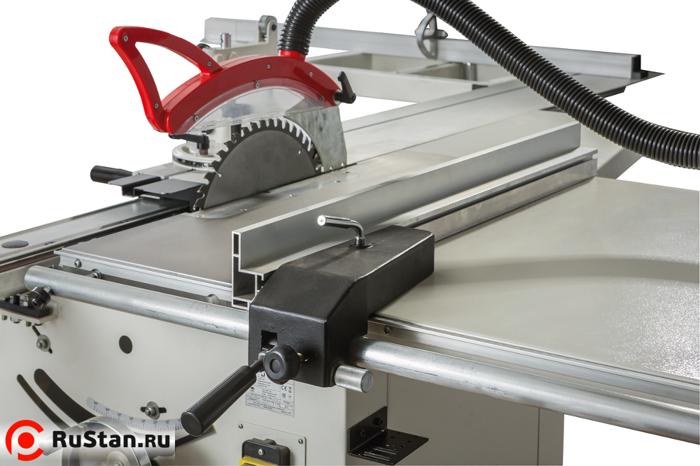 Для выполнения продольных резов есть параллельный упор, установленный на чугунном основании, которое перемещается вдоль направляющей штанги. Узел оборудован эксцентриковым механизмом фиксации и рукояткой для точной подстройки положения.
