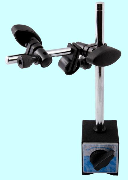 Предназначен для фиксации и удерживания индикаторных головок типа ИЧ с ушком и без ушка с диаметром штока 8.0мм, а так же индикаторных головок типа ИРБ. Оснащен винтовым механизмом тонкой регулировки подачи измерительной головки. Усилие отрыва 60 кг Основание 58х50х55мм Стойка d12х176мм Консоль d10х185мм Вес 1.4кг