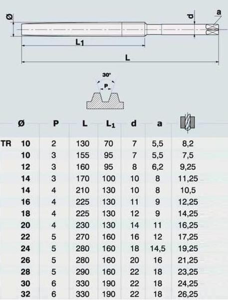 Метчики для трапецеидальной резьбы TR в Краснодаре