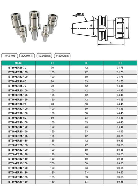Патрон Цанговый с хв-ком 7:24 - BT30 (MAS403) (для станков c ЧПУ М12х1.75) под цанги ЕR25 (BT30-ER25-70)