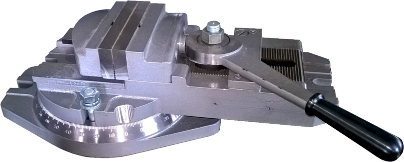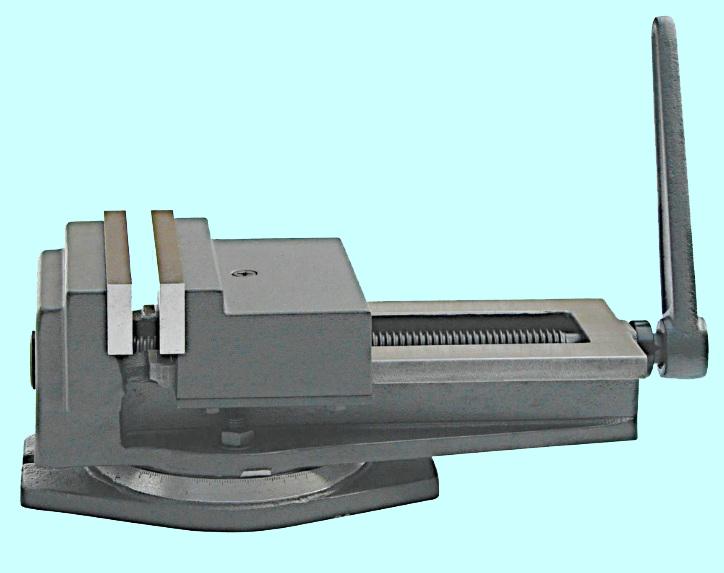 - Поворотные тиски представляют из себя аналогичные неповоротные с добавлением поворотного основания (стола);