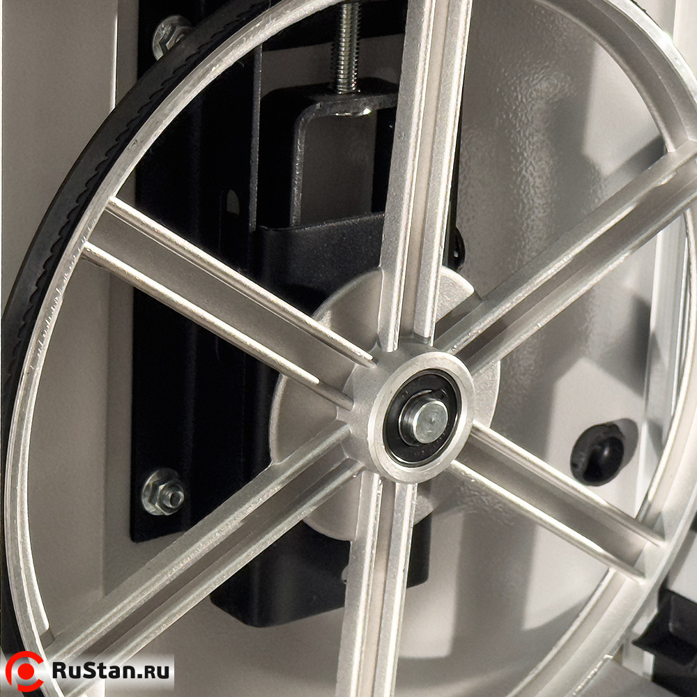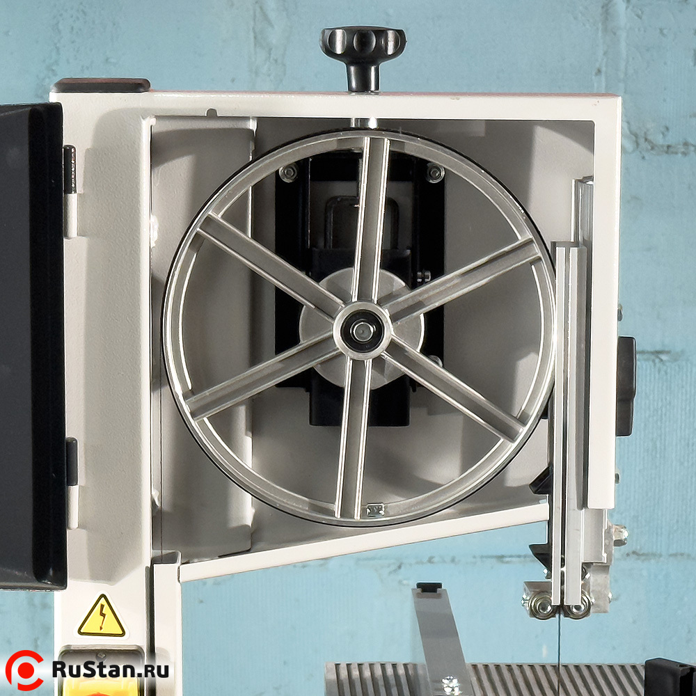 Для точной обработки большого количества одинаковых изделий в комплекте ленточной пилы имеются упор с линейкой и транспортир, с помощью которых устанавливается длина обрабатываемого изделия и угол среза на нём