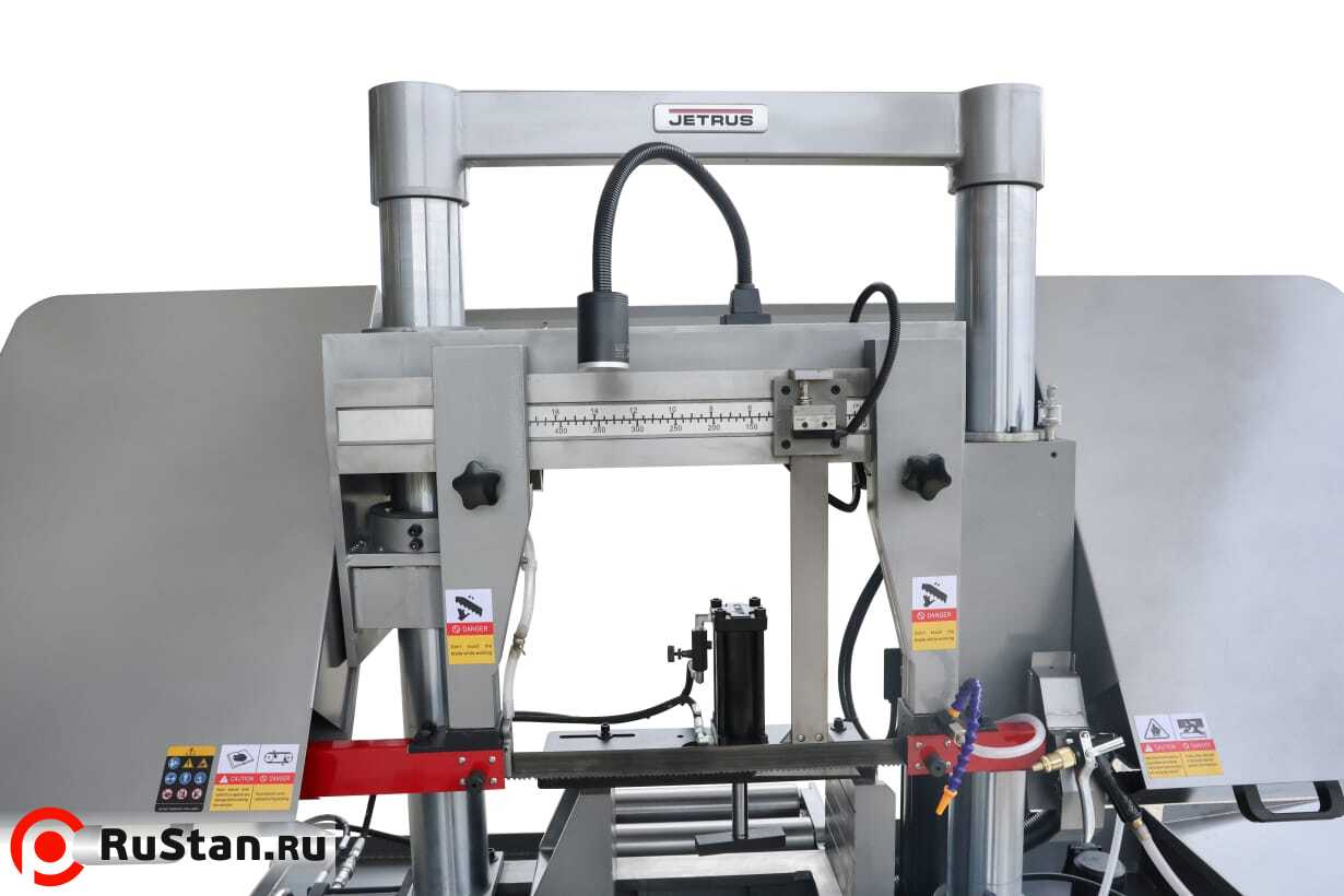 Станок оснащён гидравлической системой подъёма и опускания пильной рамы с плавной регулировкой скорости подачи с пульта оператора. По окончании пиления концевой выключатель останавливает движение полотна, и рама поднимается в исходное положение.