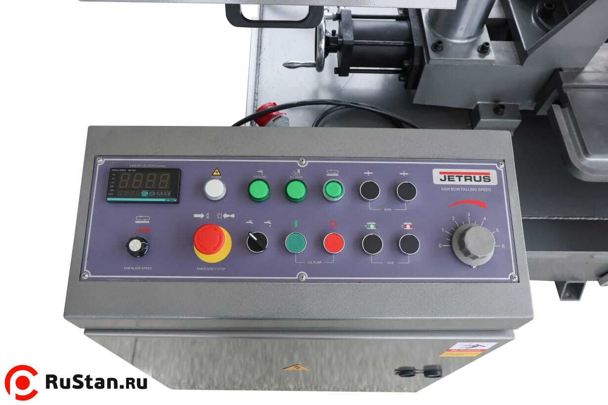 - Бесступенчатое изменение скорости движения полотна с инверторным управлением, в диапазоне от 0 до 70 м/мин, для производительного пиления различных материалов.