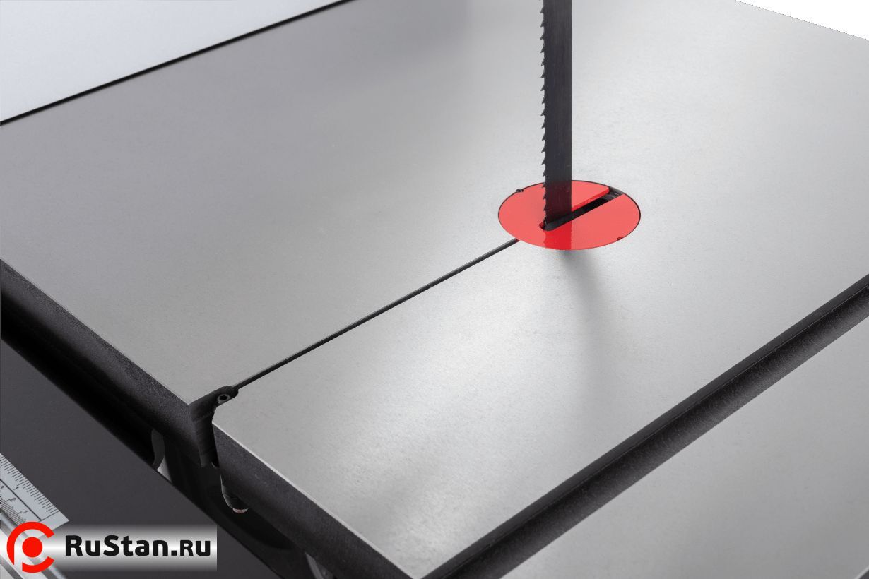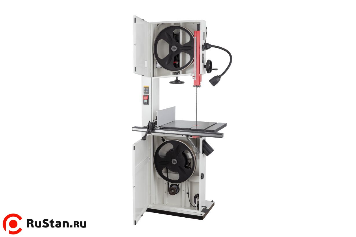 Натяжение пильной ленты осуществляется одним движением рычага. Направление ленты обеспечивают две группы трехроликовых направляющих на шарикоподшипниках (над и под столом). Для контроля используются стрелочный индикатор натяжения и смотровое окно. Плавность хода обеспечивают компьютерно сбалансированные чугунные шкивы.