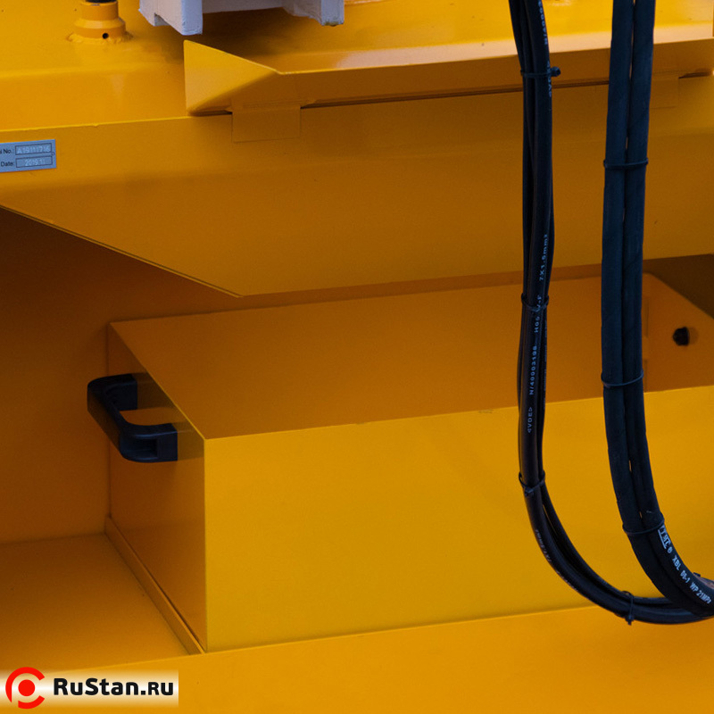 Модель оснащена гидравлическими тисками и гидроприводом с регулировкой подачи пильной рамы на деталь при резке.