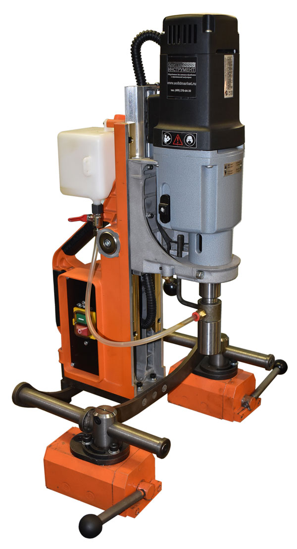 Конструктивной особенностью данного класса станков является электромагнитное основание необходимое для надёжной фиксации станка на заготовке в различных положениях (в том числе горизонтальном и перевернутом).