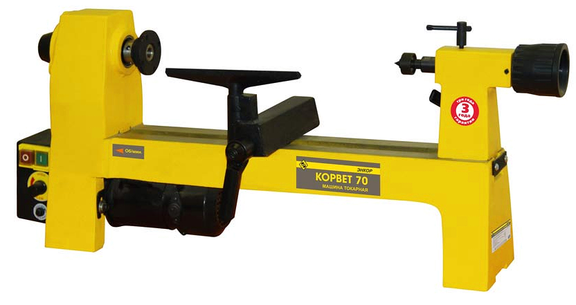 Шпиндель имеет резьбу для установки поводкового центра и планшайбы, которые входят в комплект поставки. Привод производится через ременную передачу с четырьмя парами шкивов для выбора скорости вращения в диапазоне от 800 до 2500 оборотов в минуту. Двигатель асинхронный без щеток, не требует обслуживания и рассчитан на продолжительный срок службы.